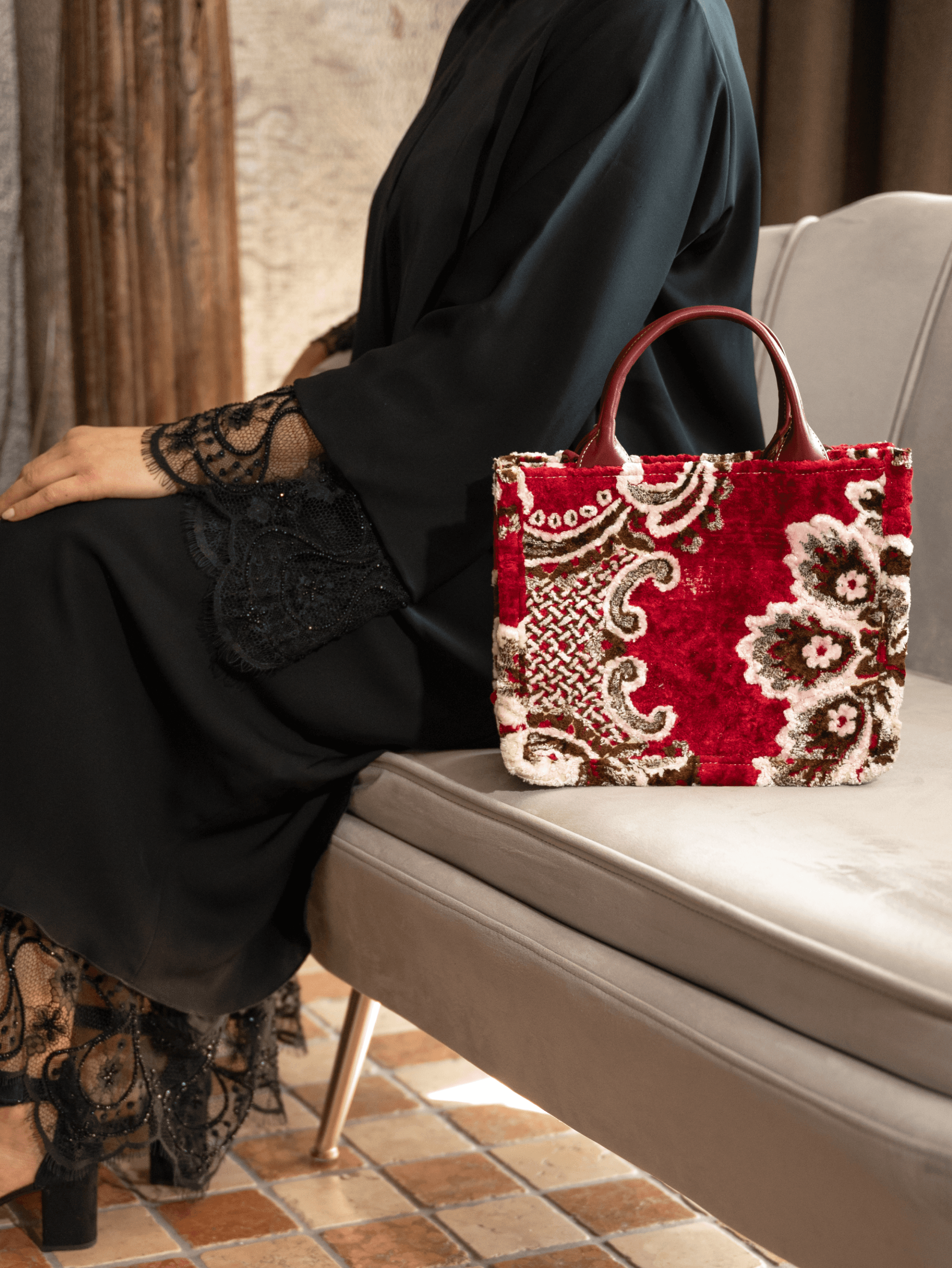 Elke tas is gemaakt van gerecyclede en duurzame materialen, zoals leerresten en overgebleven stukken tapijt of kleed. Zo krijgt bestaand materiaal een tweede leven en helpen we afval te verminderen. Met de aankoop van aan tas steun je bovendien lokale ambachtslieden in Marokko. Zij maken elke tas met de hand – met vakmanschap, toewijding en oog voor detail. Geen tas is precies hetzelfde; elk exemplaar heeft zijn eigen karakter. Meer dan een accessoire, vertelt elke tas een verhaal – een mix van cultureel erfgoed en